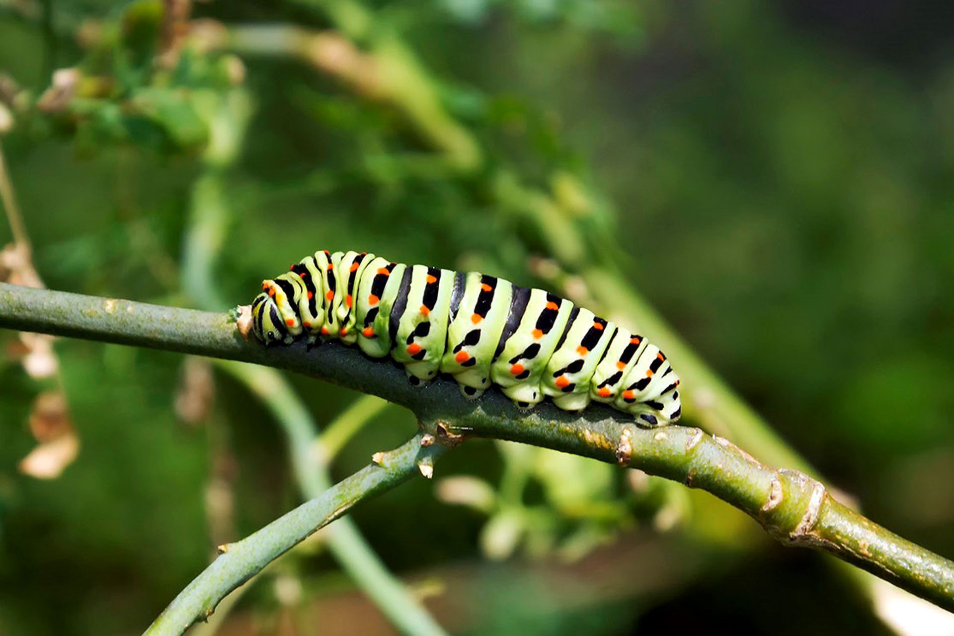 1630 – Larva de borboleta-cauda-de-andorinha (Papilio machaon) – Lisboa, Portugal