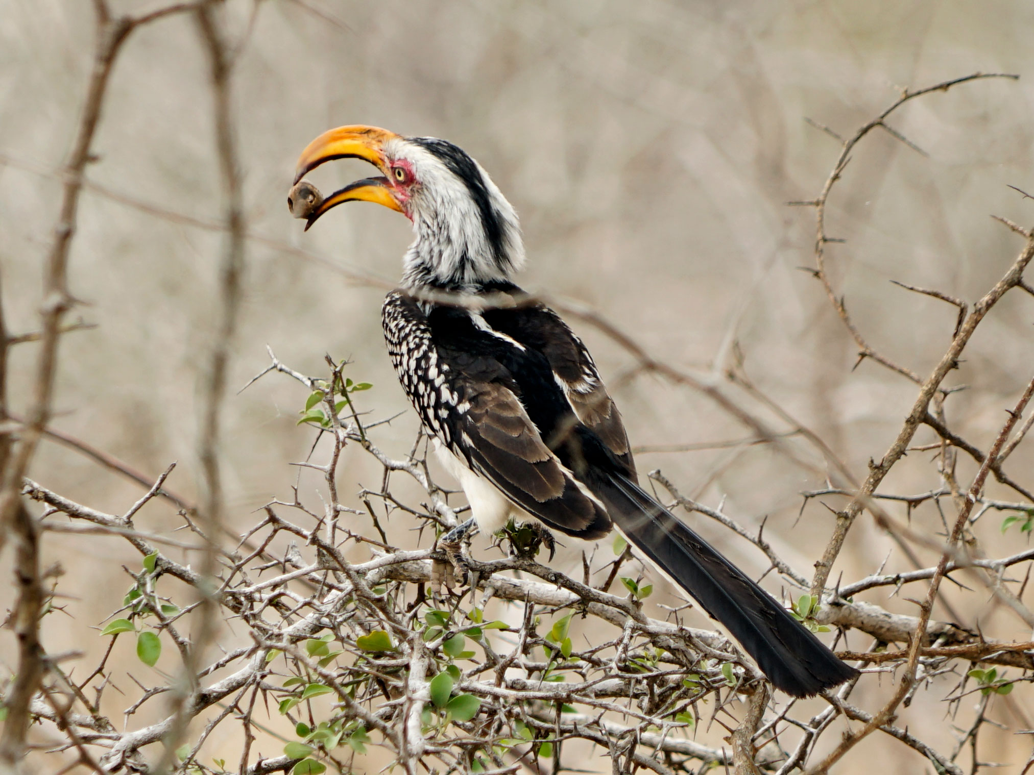 5073 – Calau-de-bico-amarelo (Tockus leucomelas) – Kruger partk, África do Sul